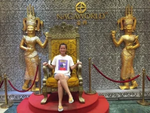 Sau bữa ăn tối tham quan Casino Nagaworld. Bên trong khu chơi bài họ thiết kế trần nhà là một bầu trời nhân tạo. Dù bạn đi vào ban đêm bạn cũng tưởng như ban ngày nên sẽ làm cho người chơi quên đi thời gian và bị cuốn vào nó.