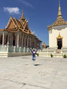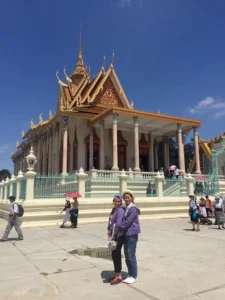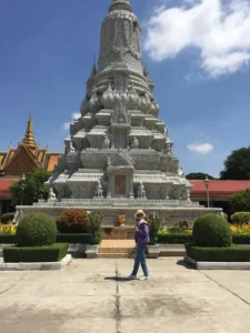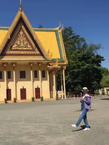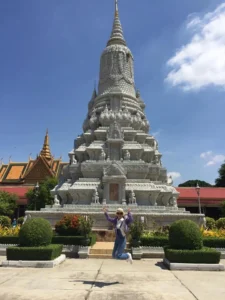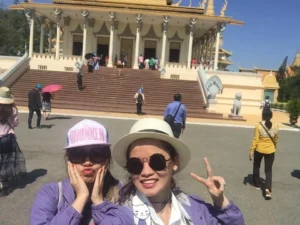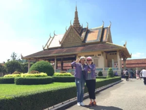 Buổi sáng tham quan Đài tưởng niệm độc lập nằm ngay chính giữa giao lộ trung tâm Phnom Penh. Sau đó là Cung điện Hoàng Gia, Chùa Vàng Chùa Bạc.