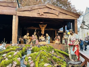 Thị trấn khá nhỏ nên chợ Giáng Sinh cũng không có quá nhiều gian hàng. Khu vực bên ngoài, đối diện bờ sông, chủ yếu bán đồ dùng và các loại tinh dầu. Đi sâu vào bên trong mới là khu bán đồ ăn. Dọc từ ngoài đường đi vào chợ có rất nhiều cây thông được trang trí bằng đủ loại phụ kiện khác nhau, tạo không khí lễ hội khá dễ thương.