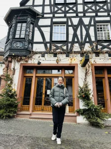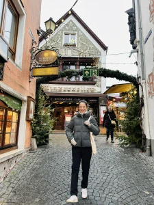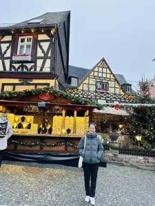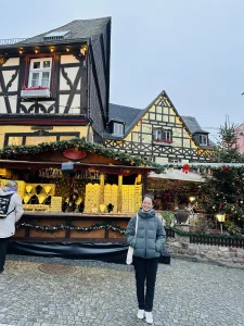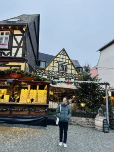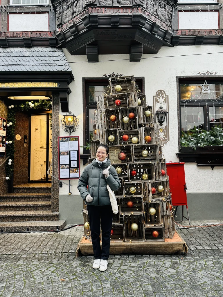 Rüdesheim, một thị trấn nhỏ nằm bên dòng sông Rhein. Ở đây chủ yếu trồng nho và sản xuất rượu vang, vì vậy khu vực này cũng thu hút khá nhiều khách du lịch. Mình đã từng ghé chơi vài lần, nhưng chưa bao giờ đến vào dịp Giáng Sinh.