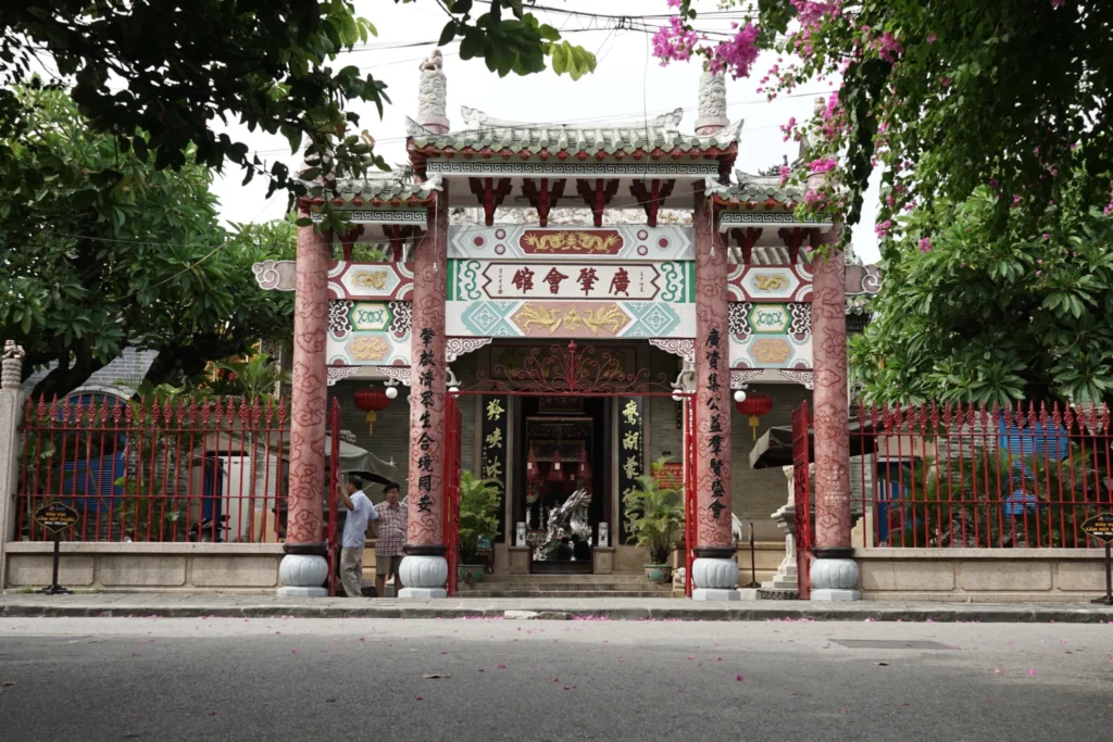 -Hội quán Quảng Đông: Được xây dựng từ năm 1885 với thiết kế, kiến trúc cực kỳ tinh xảo. Ban đầu có mục đích để thờ Thiên Hậu Thánh Mẫu và Đức Khổng Tử. Nhưng đến năm 1911 thì chuyển sang thờ Quan Công và Tiền Hiền.