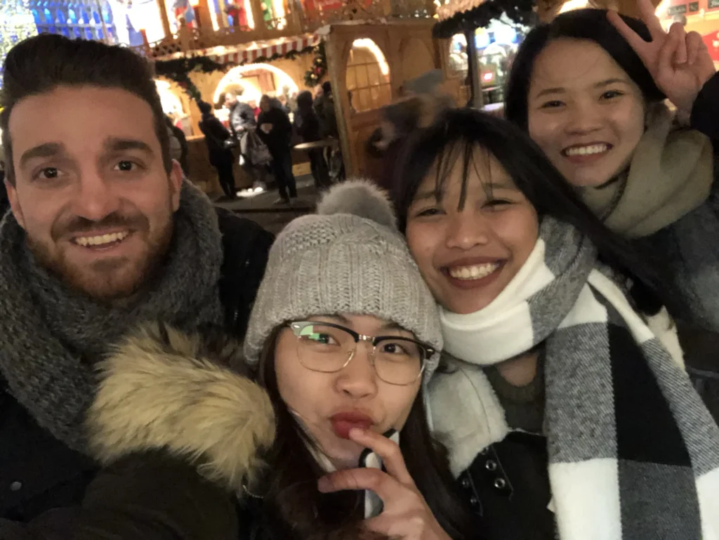 Bình thường ở trung tâm không tổ chức gì thì hai đứa vẫn kiếm cớ để đi chơi. Bây giờ thì có chợ Giáng Sinh nên hai đứa đi chơi còn tích cực hơn 😜.