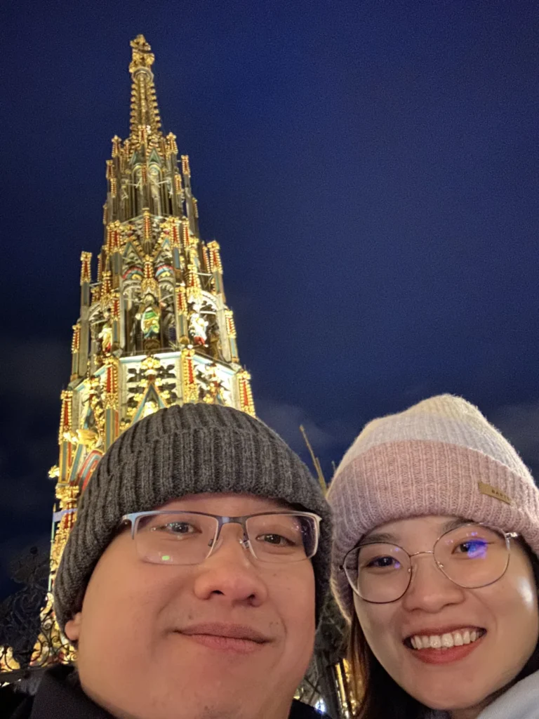 22/12/2023. Mọi năm mình tổ chức giáng sinh lại nhà, lần này mình đến Garmisch đón giáng sinh và nghỉ ngơi. Để tiết kiệm chi phí mình chọn đi xe lửa làng để di chuyển, nên thời gian đi khá lâu. Cho nên trên đường đi mình đã dừng chân ở Nürnberg. Chợ Giáng sinh ở đây là một trong những nơi tổ chức đẹp nhất ở đức, nên mình cũng muốn đi cho biết.