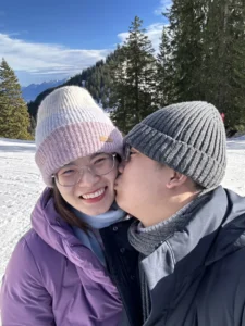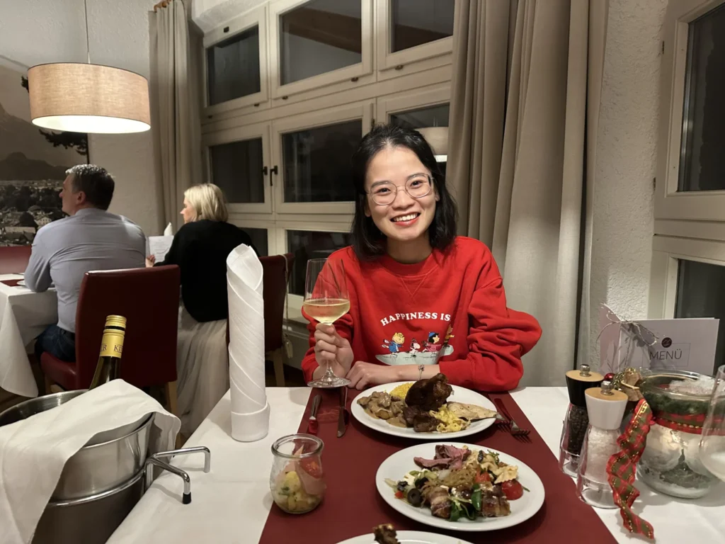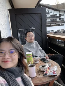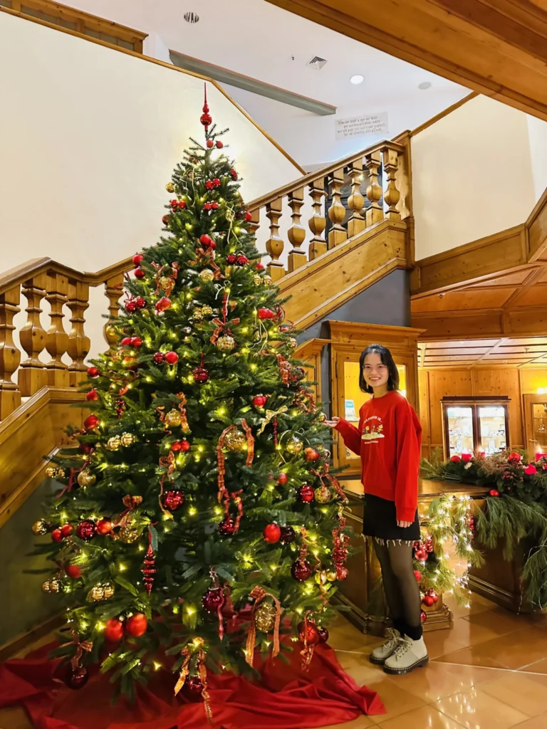 25/12/2023. 10h mình đi theo xe bus của khách sạn để đến khu trượt tuyết. Đây là lần đầu tiên mình đến khu trượt tuyết, mọi cảnh vật xung quang đều bao phủ bởi một lớp tuyết trắng xoá :))