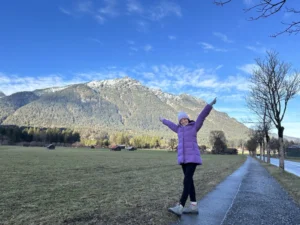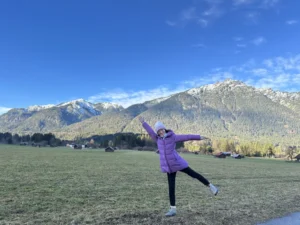 Chỗ mình ở là Riessersee Hotel 4 sao nằm ở độ cao 785m, diện tích khoảng 26.000m2, siêu siêu dễ thương. Khách sạn nằm trong rừng bên cạnh có hồ và thác nước hahaha. Nên không có xe hơi buộc phải đi taxi mới tới được.