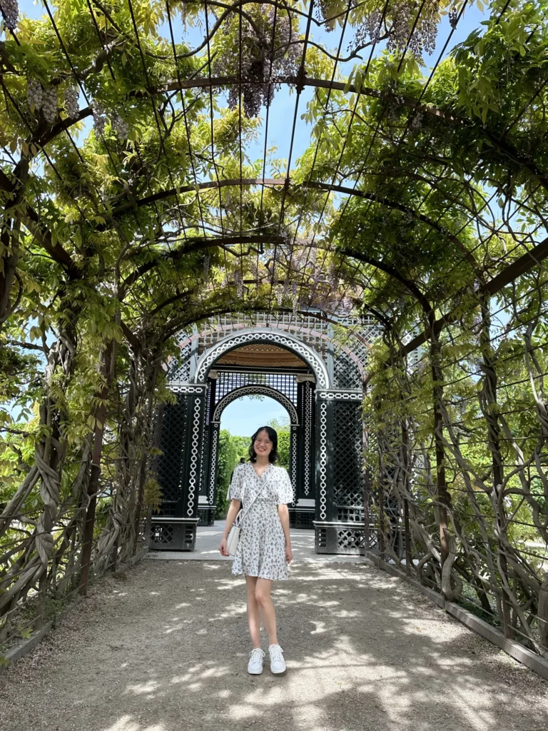 Tiểu đình Gloriette: Trên khu đồi cao cạnh vườn Great Parterre, nữ hoàng Maria Theresa đã cho xây dựng khu tiểu đình Gloriette để vinh danh uy quyền của hoàng tộc Habsburg. Khi đứng từ tiểu đình này bạn sẽ được chiêm ngưỡng toàn cảnh đẹp của thủ đô Wien. Nhưng vì cũng vì quá cao nên mình chỉ đứng ở dưới đồi để chụp hình mà thôi 😁.