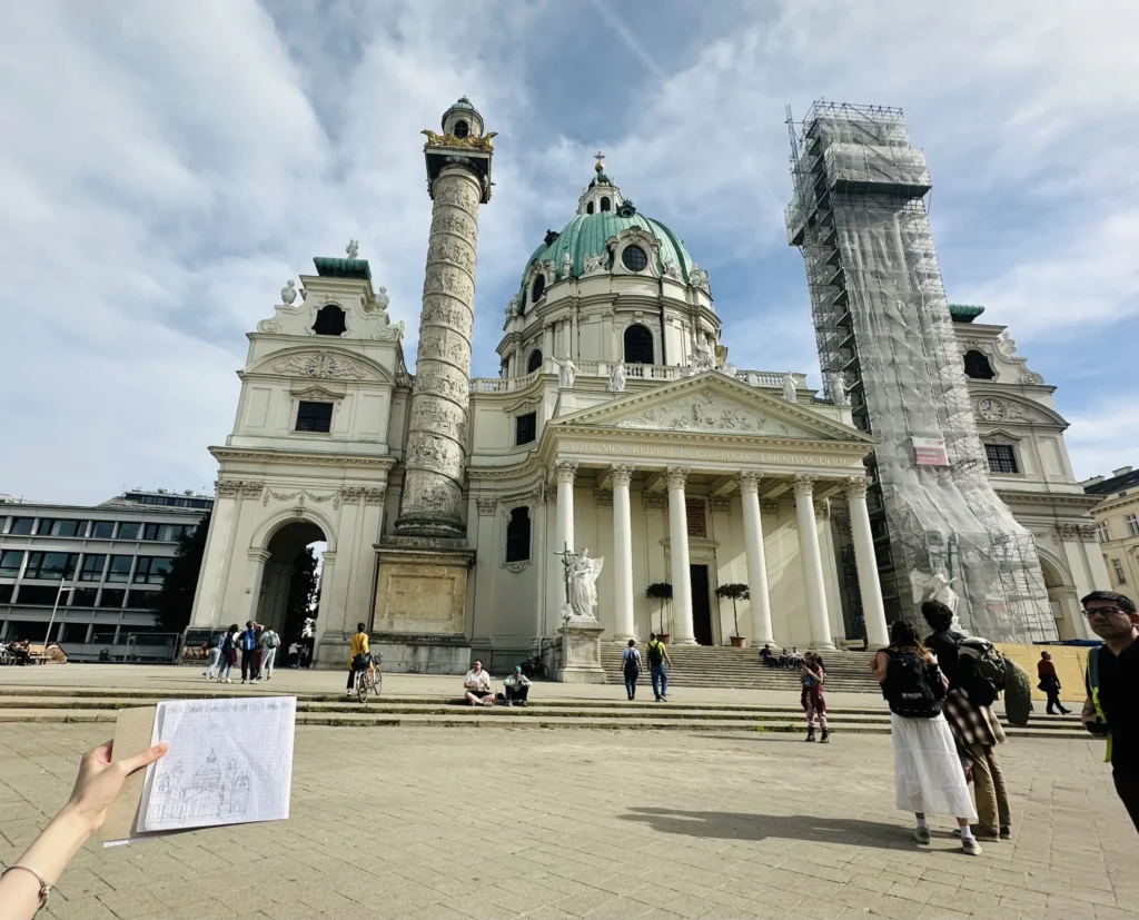 Đây là Karlskirche (Nhà thờ St. Charles), công trình vĩ đại cuối cùng của kiến trúc sư Baroque lỗi lạc Johann Bernhard Fischer von Erlach. Hoàn thành vào năm 1739, nó được xây dựng theo lời thề của Hoàng đế Charles VI trong một bệnh dịch. Nhà thờ được dành riêng cho tên của hoàng đế Habsburg, Thánh Karl Borromäus. Cuộc đời và các tác phẩm của ông được mô tả trên hai cây cột khổng lồ (cao 47 mét) bên cạnh cổng vào. Những bức bích họa mái vòm xa hoa của Johannes Michael Rottmayr bao phủ 1.250 m² màu sắc lộng lẫy.