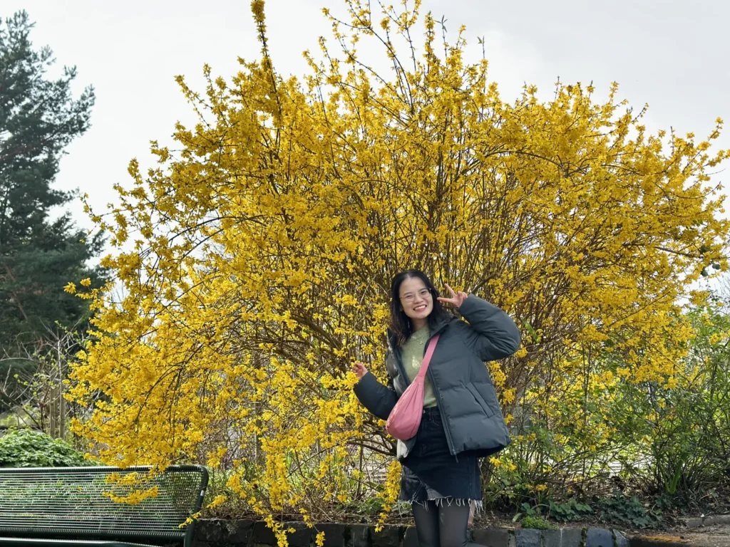 Khi bước vào mùa xuân, tiết trời ấm áp và những loài hoa đua nở, thật tuyệt vời để dành một ngày lang thang trong công viên, hít thở không khí trong lành và ngắm nhìn cảnh vật yên bình. Là sinh viên của đại học Goethe, mình có thể tự do bước vào công viên mà không cần mua vé.