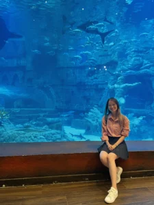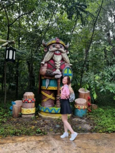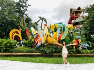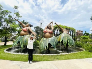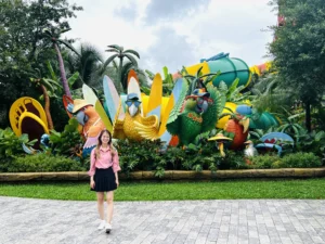 Ta nói, bọn mình đi ngay mùa mưa, KHỔ !!! Tưởng công viên đóng cửa luôn chớ. Do trời mưa nên các trò chơi cảm giác mạnh hay đi xe lửa… đều bị huỷ, cho nên bọn mình chỉ được tham quan những thứ ở trong nhà như thuỷ cung nè , hay khu công viên nước. Mà thôi đã đến rồi thì chơi thôi, cho gì chơi đó kkk, mưa thì ta cầm dù.