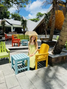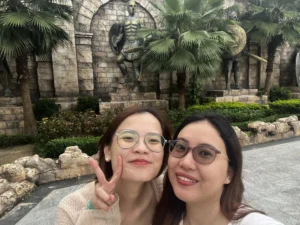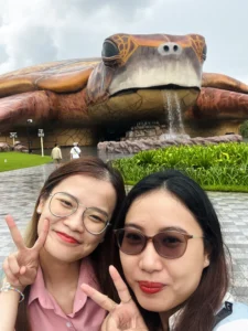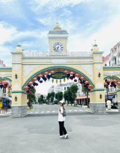Cuối cùng sau 2 năm dịch Covid-19 mình đã được về Việt Nam thăm gia đình vào mùa hè năm 2022. Đây là chuyến du lịch cùng người dì dấu yêu khi mình ở Việt Nam chơi. Sáng sớm bọn mình đi taxi từ nhà ra sân bay Tân Sơn Nhất. Khoảng 10h là bọn mình đã có mặt tại sân bay Phú Quốc. Và bắt đầu cuộc du hí thôi nào. Khi mình đặt phòng ở khách sạn thì họ bao gồm cả taxi đưa đón về khách sạn luôn. Do khách sạn của mình phía trước cổng đang sửa chữa nên con đường đi vào khá là sình lầy, nên vẻ ngoài của nó khá lem luốc. Do mình đến sớm nên mình chỉ gửi vali. Đến tối mình mới quay về nhận phòng. Sau khi gửi vali xong thì bọn mình đi ra bến xe bus miễn phí của Vinpearl Phú Quốc để đi đến VinWonders.