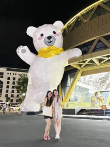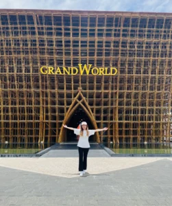 Sau đó bọn mình thuê một anh chạy xe điện chở bọn mình đi tham quan Grand World Phú Quốc nằm gần VinWonders, nó cũng thuộc tập đoàn Vingroup. Grand World được mệnh danh là “thành phố không ngủ”, nơi đây có thời gian hoạt động liên tục 24/7, thuộc siêu quần thể Phú Quốc United Center. Bên trong khuôn viên chỉ được sử dụng các phương tiện chạy bằng điện: xe máy, xe đạp, xe bus.