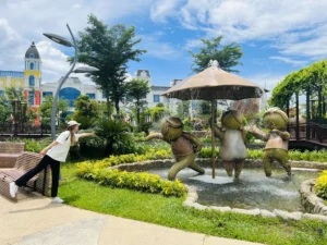 Tại đây bạn tha hồ chụp ảnh check in, sống ảo. Các điểm check in Phú Quốc United Center với hàng chục tác phẩm nghệ thuật đương đại sắp xếp khéo léo giữa thiên nhiên, Teddy Bear Museum với hơn 500 chú gấu đáng yêu, huyền thoại nhà tre với kiến trúc đỉnh cao cho đến trong nhiều câu chuyện hiện ra giữa lòng đảo ngọc…Có một “Venice phương Đông” với những con thuyền Gondola lừng danh, các dãy nhà sặc sỡ sắc màu của nước Ý được mô phỏng vô cùng rực rỡ.