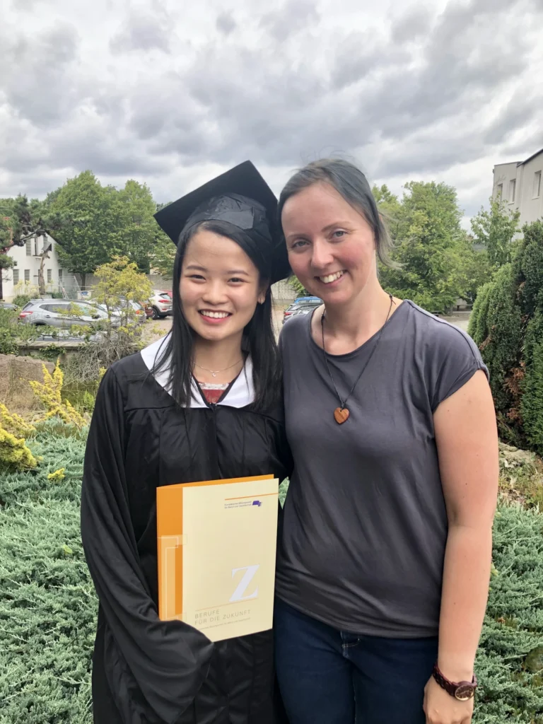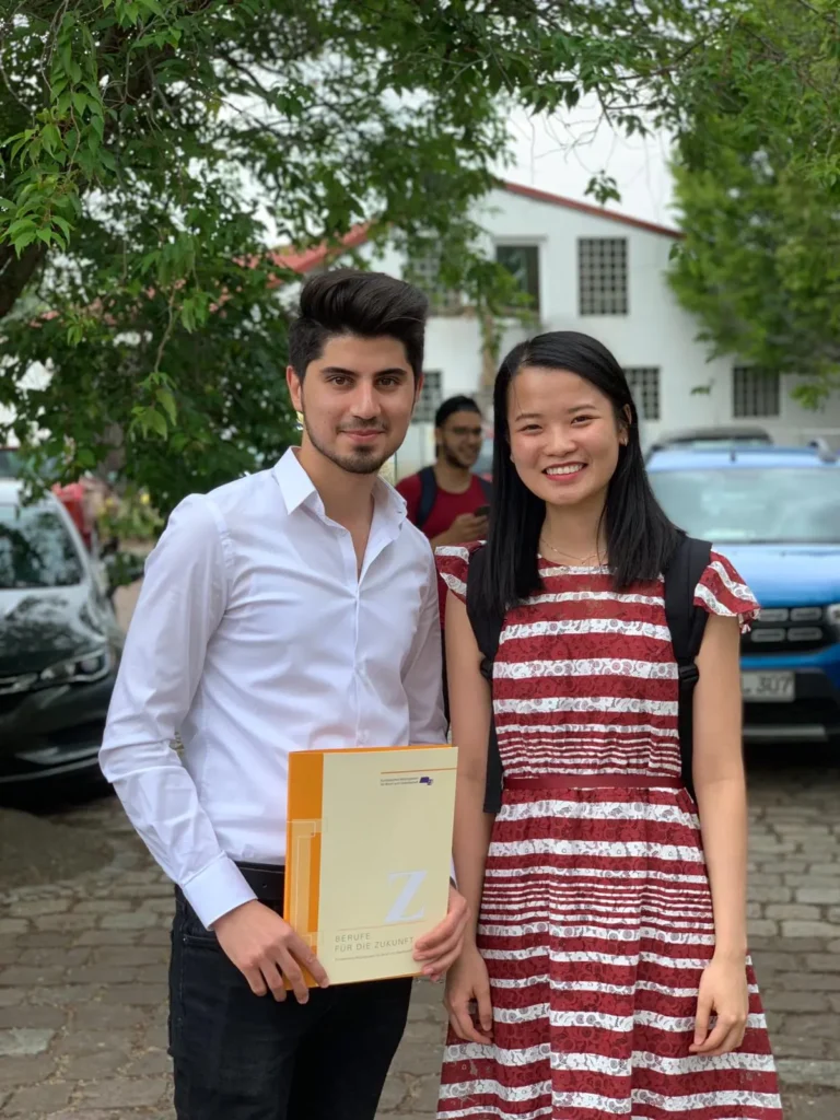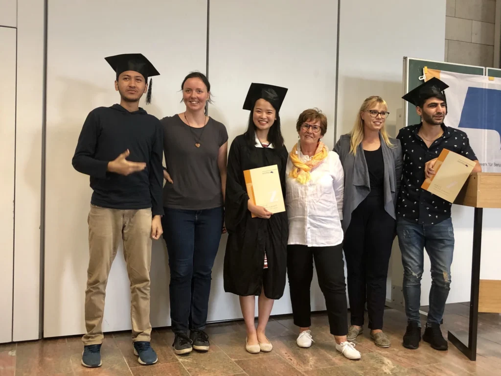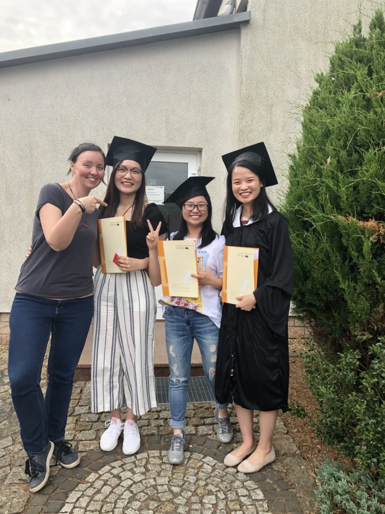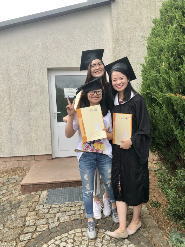 Có ngày mở đầu, thì cũng có ngày kết thúc. Hôm nay bọn mình chính thức tốt nghiệp STK và cầm tấm bằng trên tay. Sau 10 tháng cùng nhau trải qua bao nhiêu sóng gió thì cũng đến ngày tốt nghiệp. Tấm bằng này là 1 tấm vé để bọn mình bước vào cánh cửa Đại học ở Đức. Những thầy cô vô cùng tâm huyết đã giúp chúng mình hoàn thành tấm vé này một cách trọn vẹn nhất. Bên cạnh đó là những người bạn( Ying, Yu, Bayu, Isa, Kamel, Mohammad, Akbar…) đã cùng chúng tôi đồng hành trong suốt chặn đường ấy.